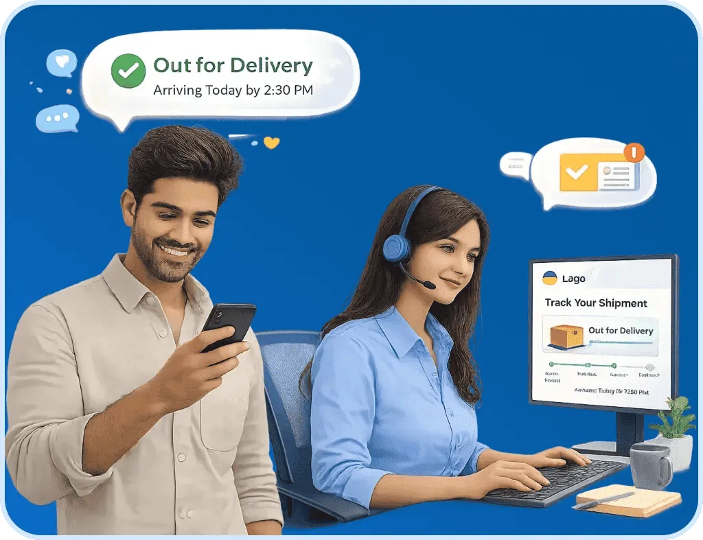 Build trust with branded shipment tracking that shows real-time order updates on a custom branded tracking page for eCommerce. Reduce WISMO queries with automated WhatsApp/SMS/email tracking notifications.